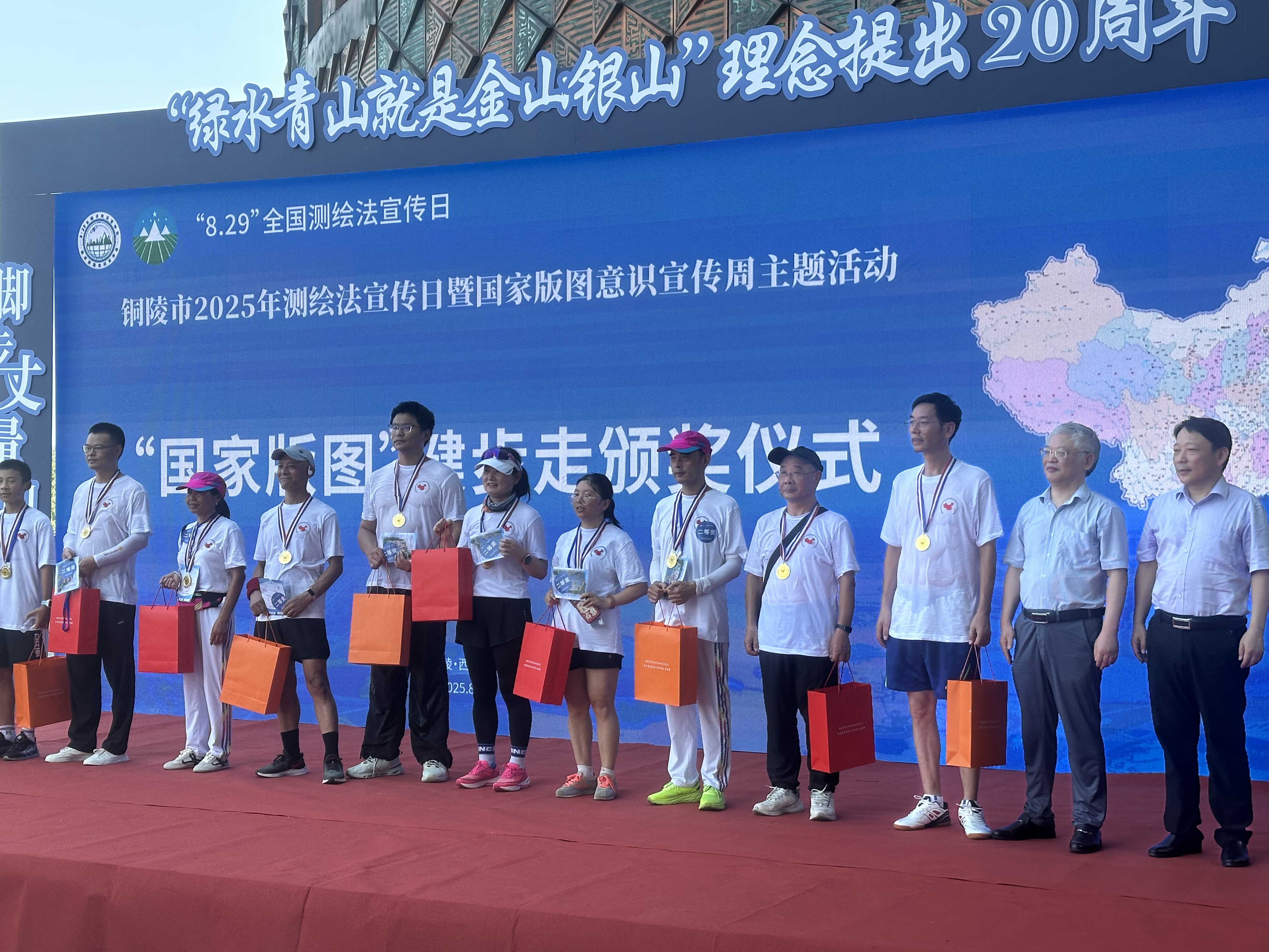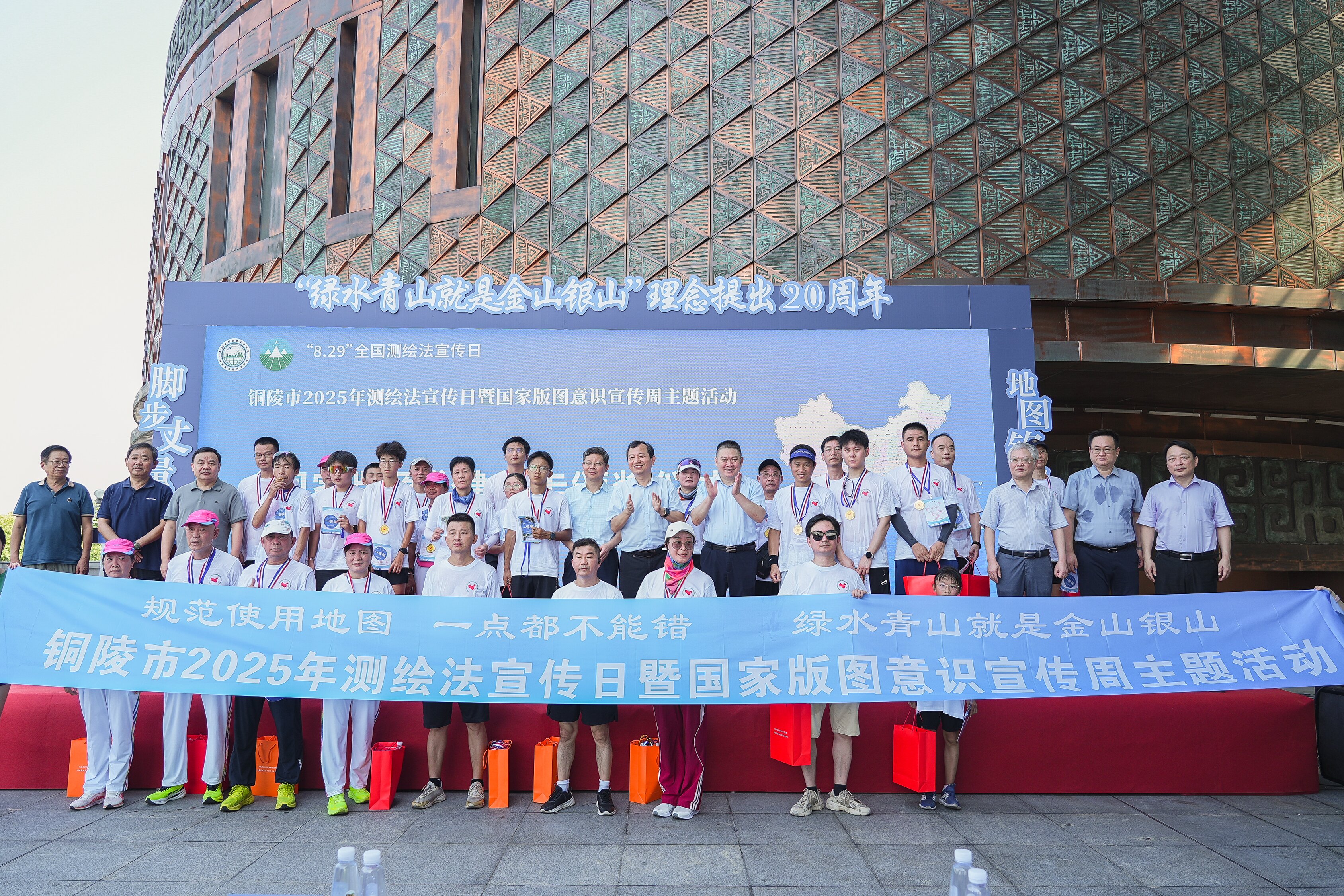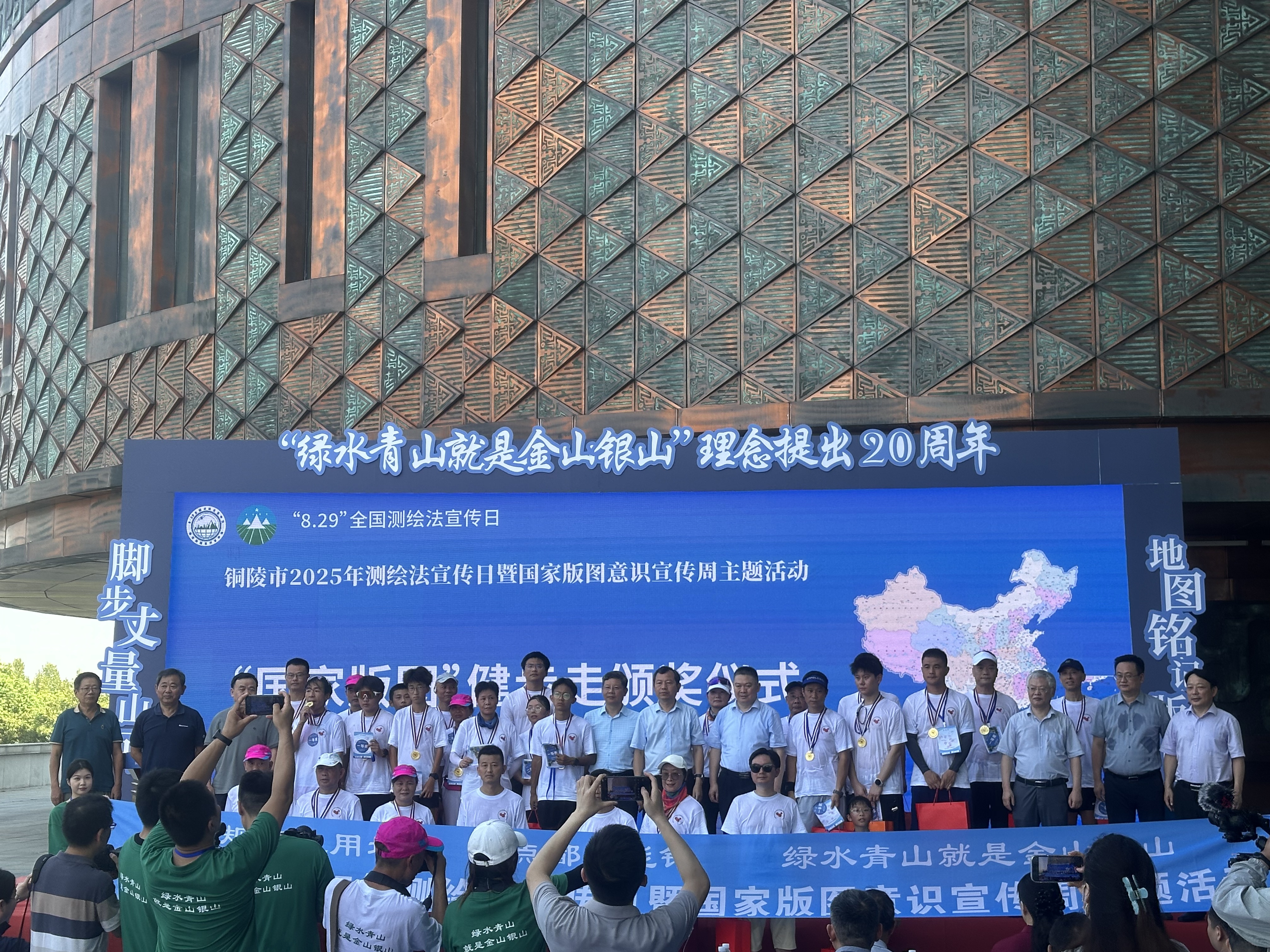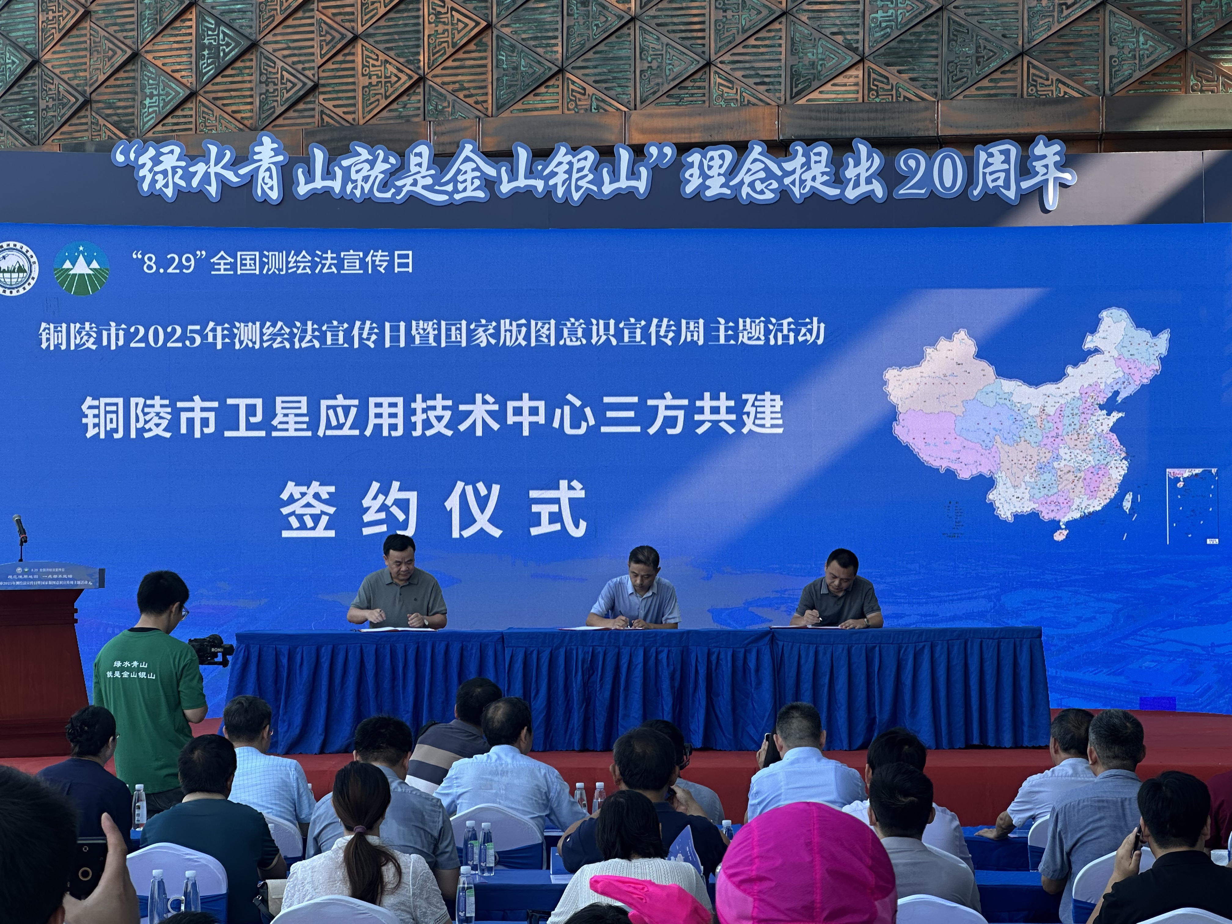 2025年8月29日,在第22个全国测绘法宣传日到来之际,由铜陵市自然资源和规划局(林业局)、铜陵市测绘学会联合主办,安徽中汇规划勘测设计研究院股份有限公司等单位协办的"铜陵市2025年测绘法宣传日暨国家版图意识宣传周"活动成功举办。铜陵市人民政府副市长汪发进、省测绘局副局长徐祖海、省基础测绘信息中心主任王迎春、等领导应邀出席。本次活动以“规范使用地图·一点都不能错”为主题,结合“绿水青山就是金山银山”理念提出20周年,通过以"脚步丈量山河,地图铭记版图"健步走、卫星应用技术中心三方共建协议签订仪式等活动,深入宣传贯彻测绘法律法规,提升公众国家版图意识。